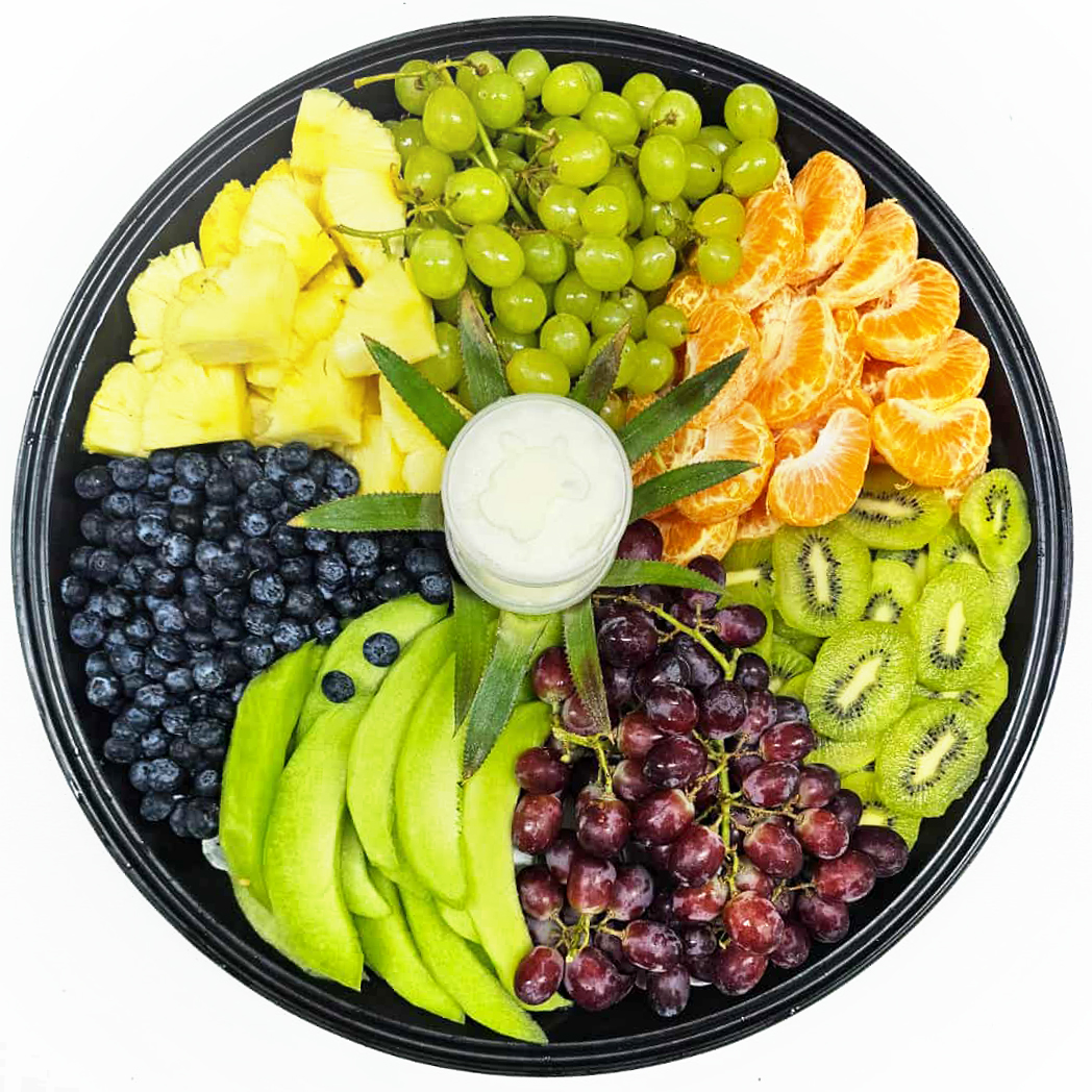 Only the freshest seasonal fruit like grapes, kiwi fruit, strawberries, pineapples and sweet melon that is beautifully slices and displayed.