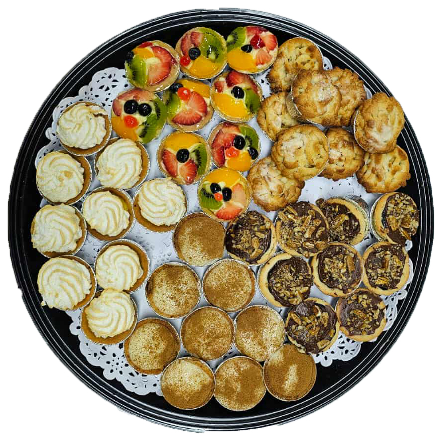 Absolute decadence. These mini treats: delicious apple crumbles, creamy milk tarts, tangy lemon meringues, custard fruit tarts and indulgent brownie tarts will keep your guests coming back for more.